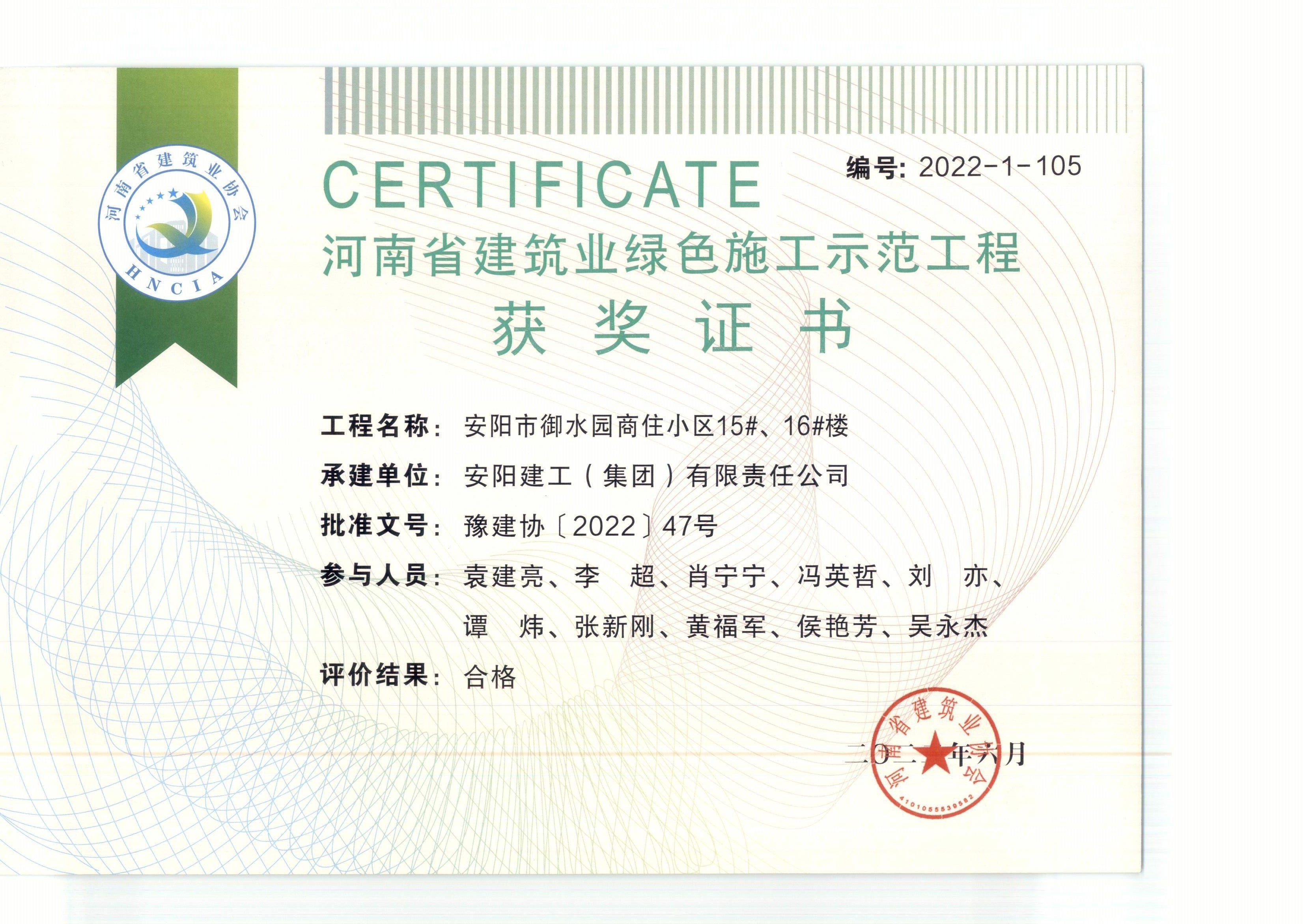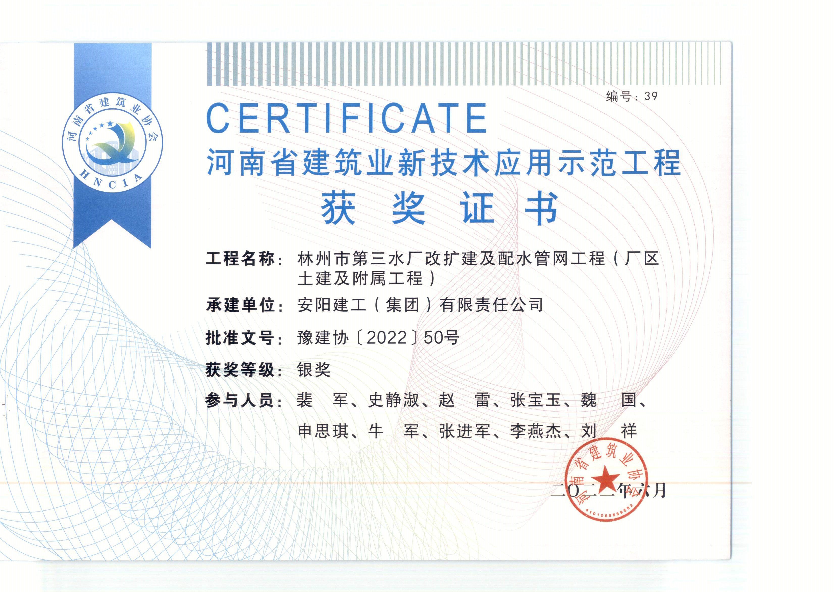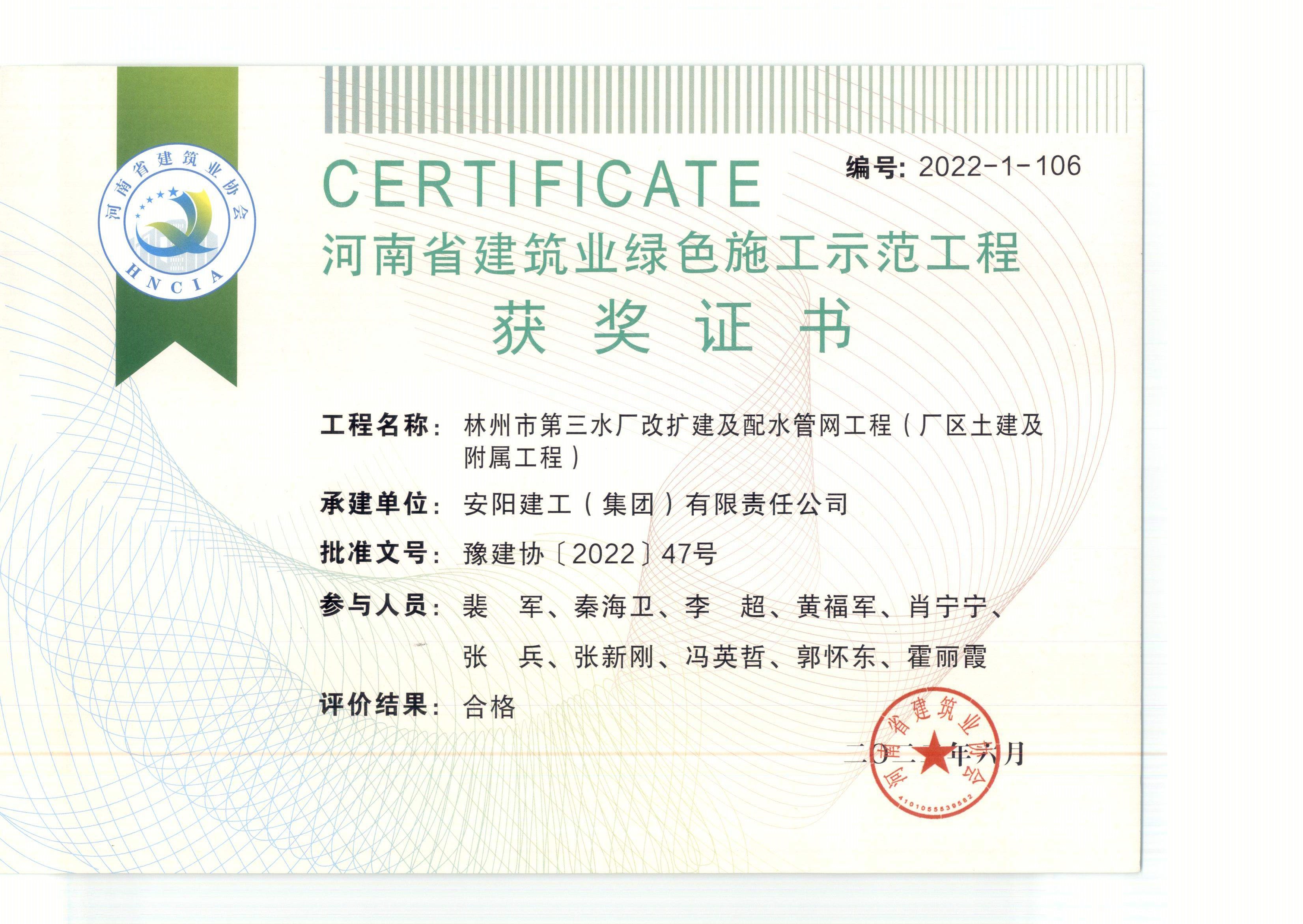 近日,集團公司技術創(chuàng)新成果再創(chuàng)佳績。公司“安陽市海悅名郡住宅小區(qū)”、“安陽市御水園商住小區(qū)15#、16#樓”、“林州市第三水廠改擴建及配水管網(wǎng)工程”申報的新技術應用示范工程和綠色施工示范工程,通過專家評審驗收。