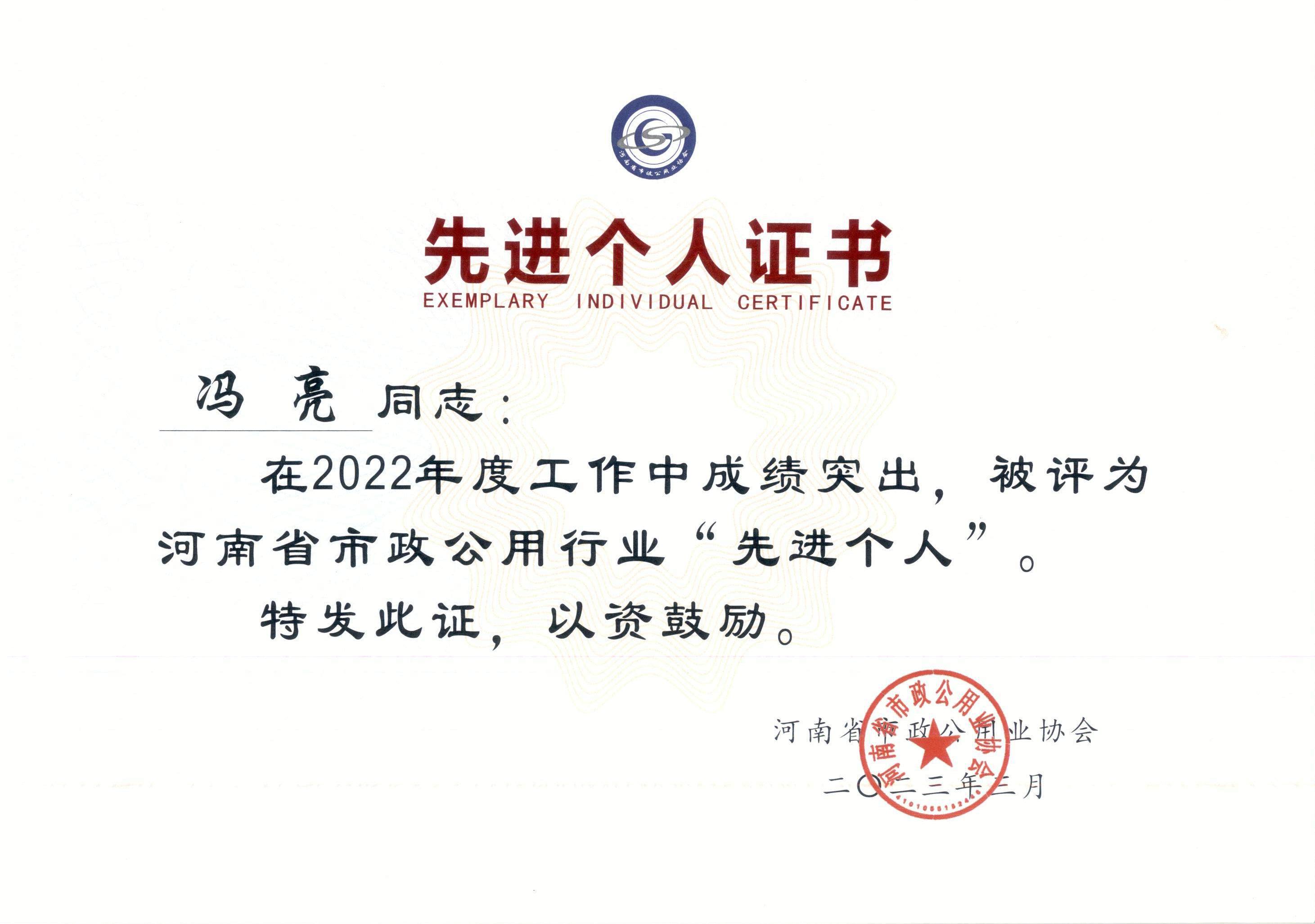 近日,從河南省市政公用業(yè)協(xié)會傳來喜訊,我集團公司榮獲“河南省市政公用行業(yè)2022年度先進單位”;集團公司“湯河公園班組”、“瓦亭溝管理班組”榮獲“河南省市政公用行業(yè)2022年度先進班組”;集團公司馮亮、郭瑞峰、李東旺榮獲“河南省市政公用行業(yè)2022年度先進個人”等6項榮譽稱號。