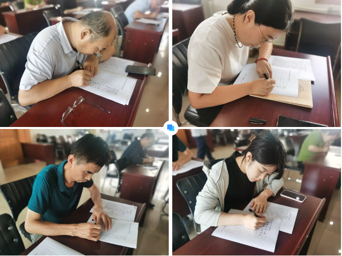 比賽形式分為初賽和現場交流賽,初賽階段,全體員工積極踴躍參與此次活動,自行完成作品,遞交到活動組委會;現場交流賽階段,由活動組委會從初賽作品中評選出的20個優秀作品書寫人員,進行現場交流比賽。8月31日下午,公司四樓會議室,參賽選手們飽蘸濃墨、激揚文字,所寫字體或大氣或清秀或剛健,盡其所能地展現自身硬筆書法的才能。