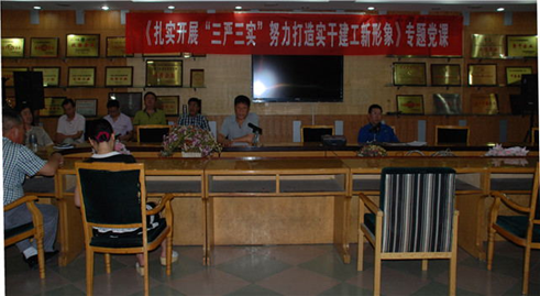 5月24日下午,公司三樓會議室,來自公司機關、項目部、分(子)公司中層以上領導干部、基層黨員代表認真聆聽了公司黨委書記謝海如同志以《扎實開展“三嚴三實”,努力打造實干建工新形象》為題的專題黨課。這也是公司今年開展“三嚴三實”專題教育實施方案的要求。黨課由公司黨委副書記馬松林同志主持。