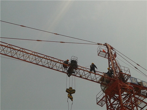 炎炎夏日,維修吊塔的每一個工人都是身穿工裝、長袖飄飄,這倒不是為了什么時尚或個性,而是若一不小心觸到一直暴曬在太陽下的吊塔部件,手臂就會被燙傷;同時,還要穿底子很厚的鞋,否則腳底板會受不了。當然,即便有了這樣的全副武裝也不是萬無一失,站在百米高的吊塔上,頭頂烈日,腳踩“風火輪”,整個身體就像被放入了“烤箱”一般,所以站一會兒就會受不了,但沒有人會停下、會放棄,因為他們知道, 這里耽誤一分鐘,工地就晚一分鐘開工,“不能影響項目的工作進度”是大家始終堅持的工作原則。