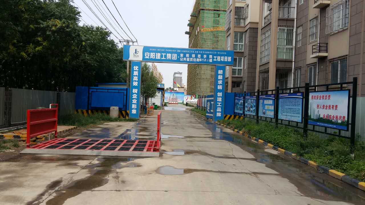 該項目按照市藍天工程指揮部的要求,施工現場嚴格按照“五化”及六個100% 標準,項目開工進場后按照公司標準化手冊要求對現場進行圍擋封閉管理,對現場裸露黃土采用黑色網格布進行全面覆蓋,對主干道全部進行硬化,大門出入口安裝全自動洗車臺,對出入大門口車輛進行沖洗,確保出入車輛不帶泥上路,在大門口設置了揚塵監督標志牌。按照“三個必須”要求,塔吊安裝后安裝了自動噴淋系統,確保作業面無揚塵,大門出入口安裝全自動洗車臺,在大門口安裝了PM2.5、PM10在線揚塵監控系統,對施工現場揚塵情況進行實時監測,安排專人對施工現場進行清掃及灑水,確保現場揚塵治理常態化,通過以上舉措提高了項目揚塵治理水平,為打好項目揚塵治理攻堅戰做好了堅實基礎,該項目部揚塵治理工作得到了市住建局等上級部門的表揚。