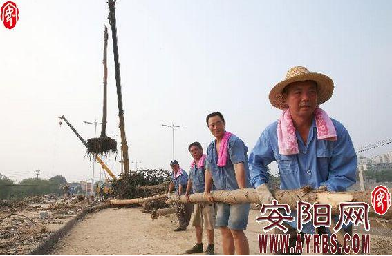 從22號至今天上午,共計4天,安陽建工出動防汛人員220余人次,吊車4部,發電機2臺,專用抓機1臺。現場共清理河道障礙物近千方,其中包括大小樹木150余棵,雜草120余方。目前安陽橋水流全面暢通,圓滿完成上級領導交代的任務。