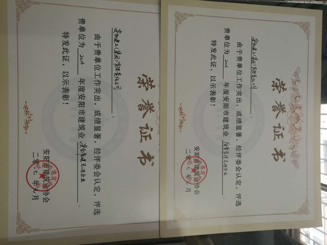 3月3日上午“安陽市建筑業(yè)協(xié)會二零一七年年會暨表彰大會”在市委黨校圖書樓三樓會議室盛大召開,2016年,在公司領(lǐng)導正確指導下,大家銳意進取,真抓實干,不斷提高管理和業(yè)務水平。我公司被評為 “安陽市建筑安全先進企業(yè)”、“安陽市建設工程質(zhì)量管理先進企業(yè)”。劉民、原伏生等16名同志獲得“安陽市建筑業(yè)企業(yè)優(yōu)秀項目經(jīng)理”稱號。