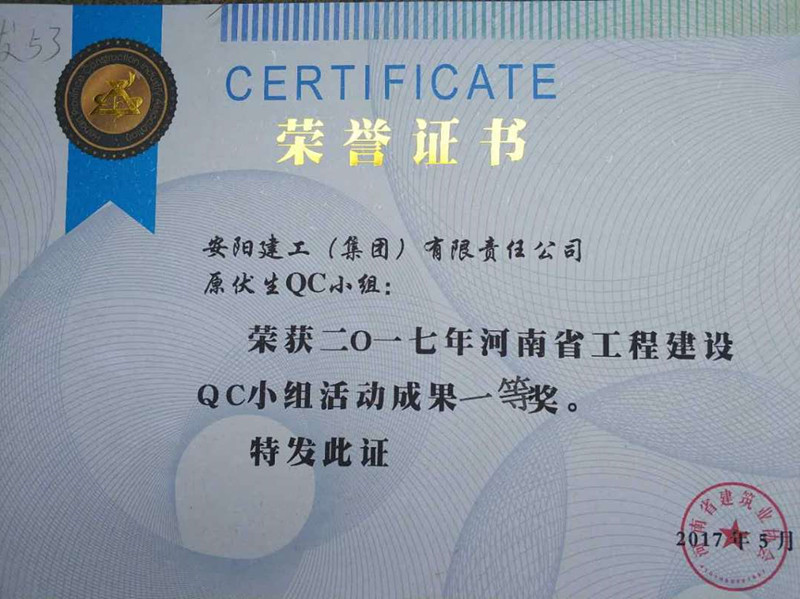 第八水廠項目在2017年榮獲省QC成果一等獎