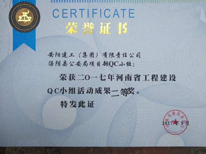 湯陰縣公安局項目部2017年榮獲省QC成果二等獎