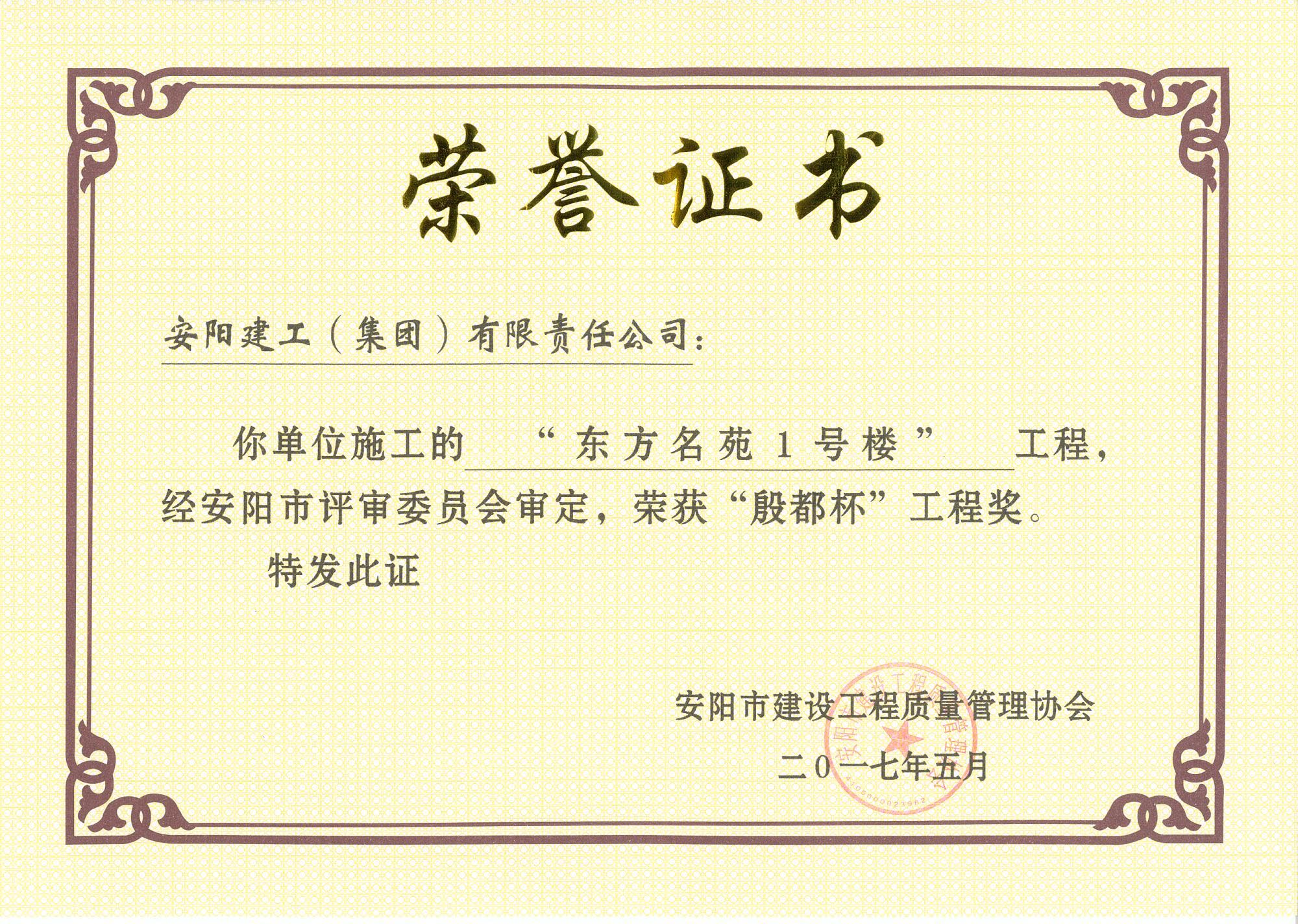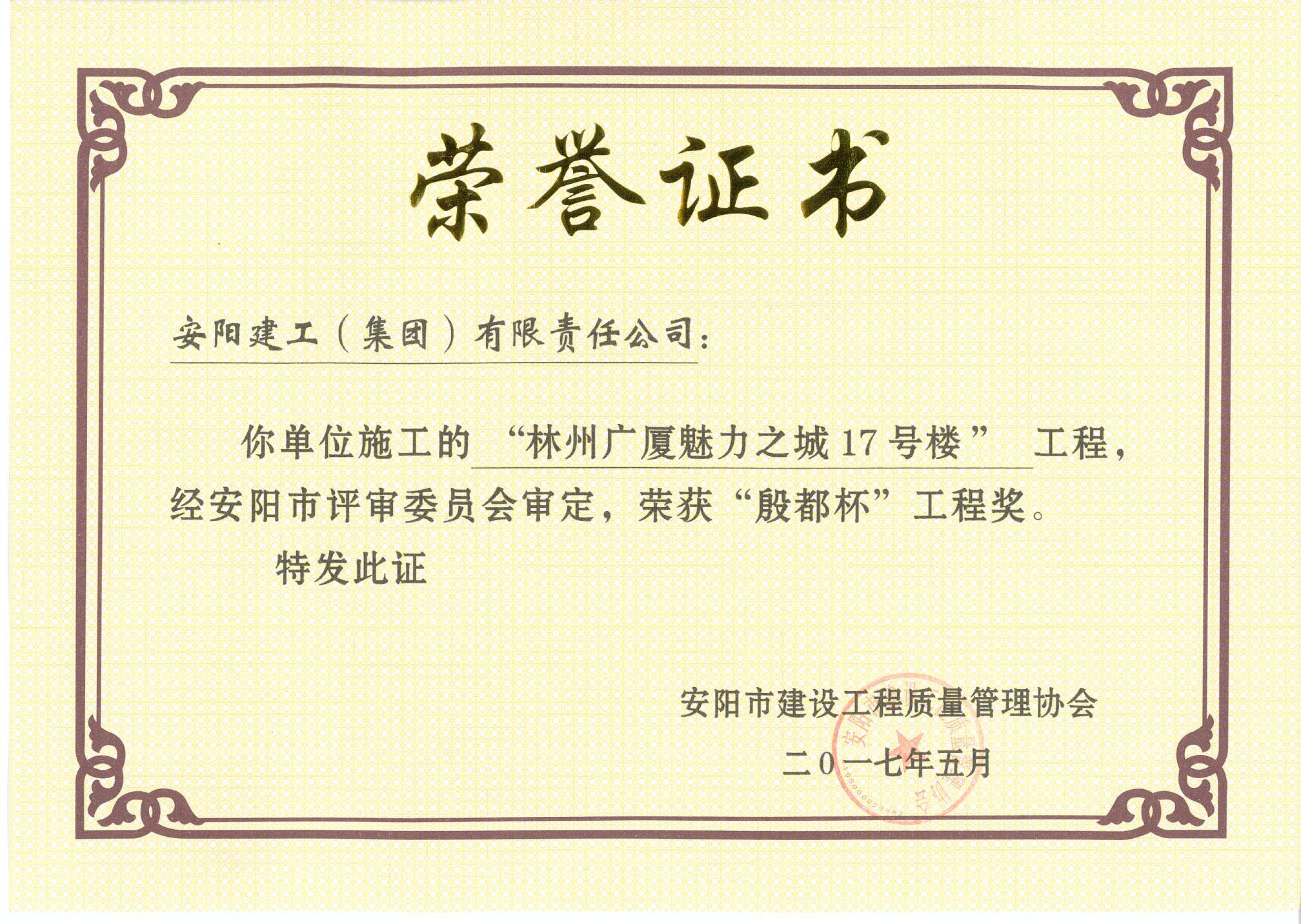 我公司又有一批施工項目榮獲市“殷都杯”工程獎