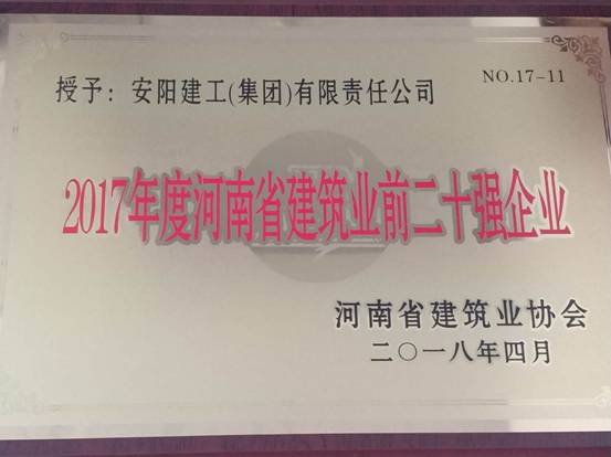 集團公司再獲"河南省建筑業前二十強企業"等榮譽