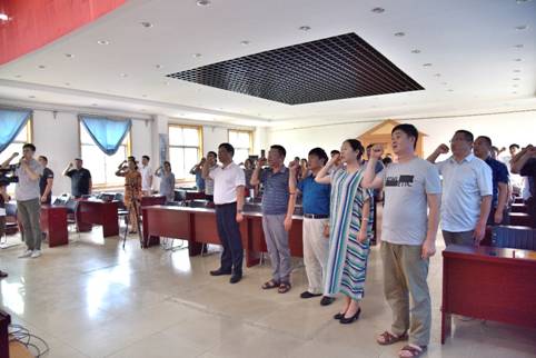 在安全部副部長(zhǎng)魏鵬同志的帶領(lǐng)下,與會(huì)所有黨員全體起立,重溫了入黨誓詞。伴隨著與會(huì)黨員《沒(méi)有共產(chǎn)黨就沒(méi)有新中國(guó)》高亢的歌聲,我們展望黨和人民在新世紀(jì)的偉大征程,充滿(mǎn)必勝的信心和力量。