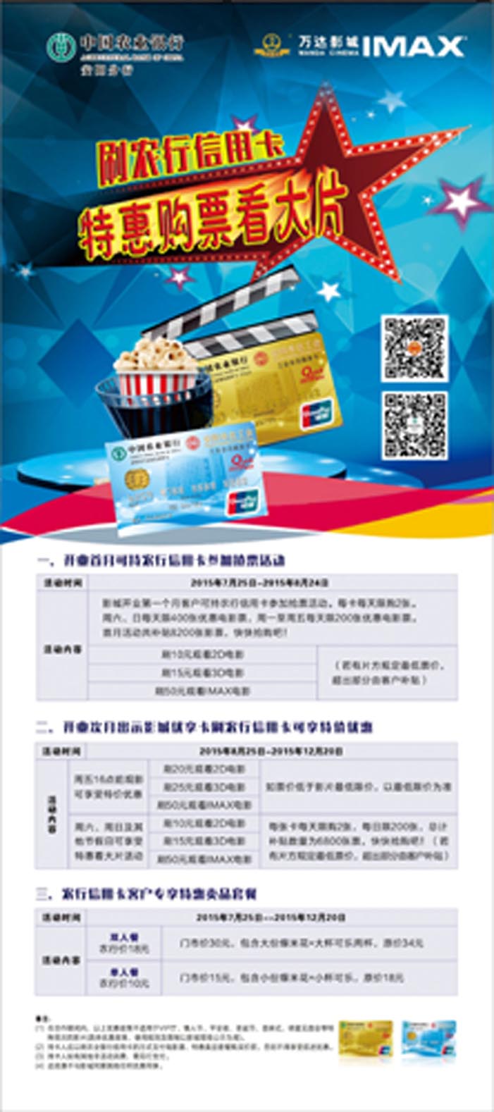 1、觀影優惠活動:2015年7月25日——8月24日;