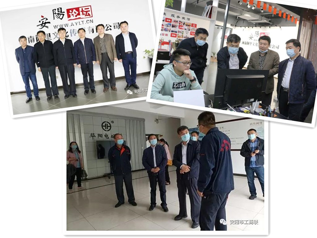 調研組認真聽取了疫情以來安陽市工商聯主動擔當作為、積極履行職責的工作舉措和成效;實地走訪了安陽宏源車輪、利華制藥、艾爾旺新能源公司、華陽電磁鐵制造公司、及河南阿里文化傳媒等民營企業。