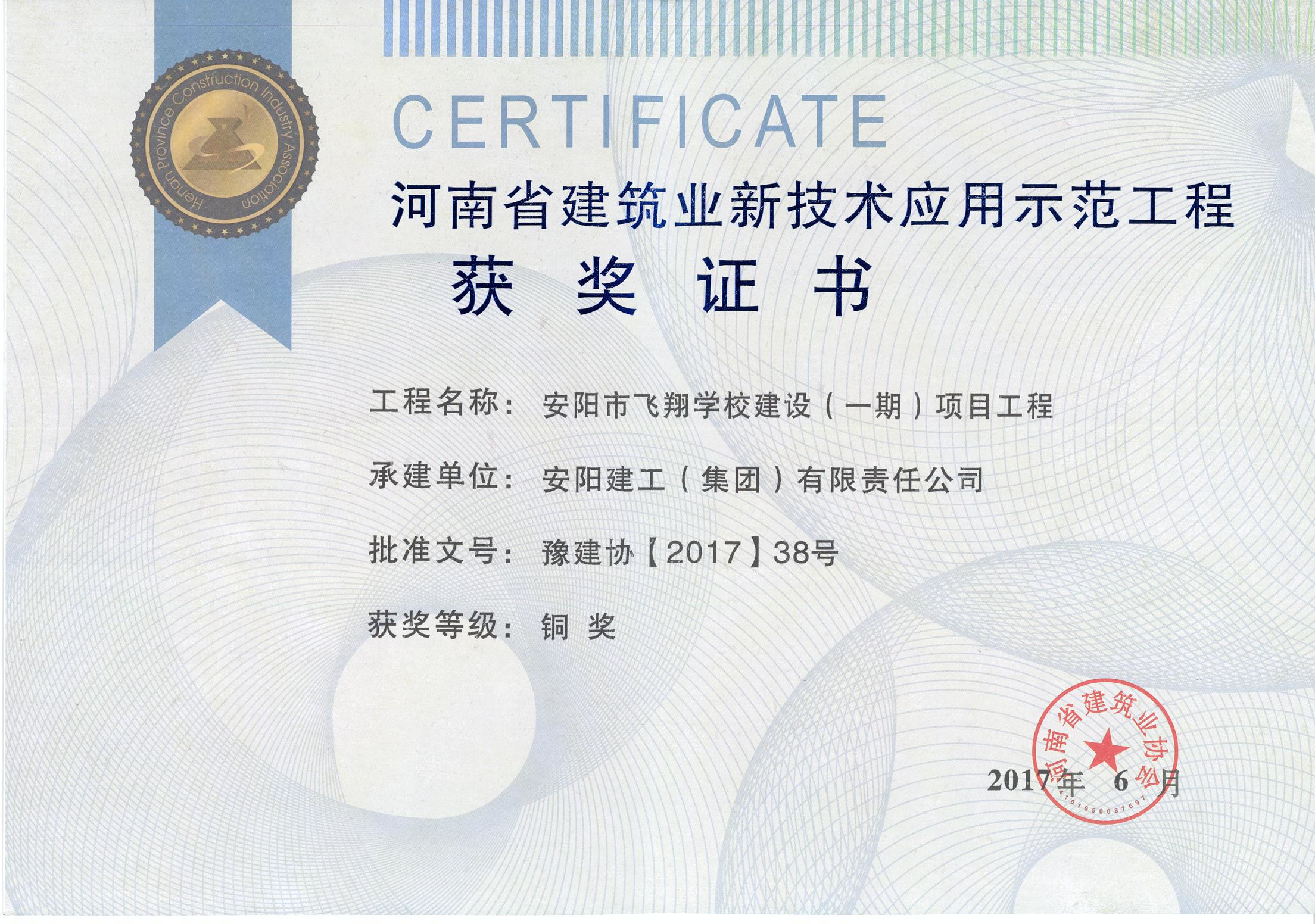 我公司安陽飛翔學校項目榮獲17年省建筑業新技術應用示范工程