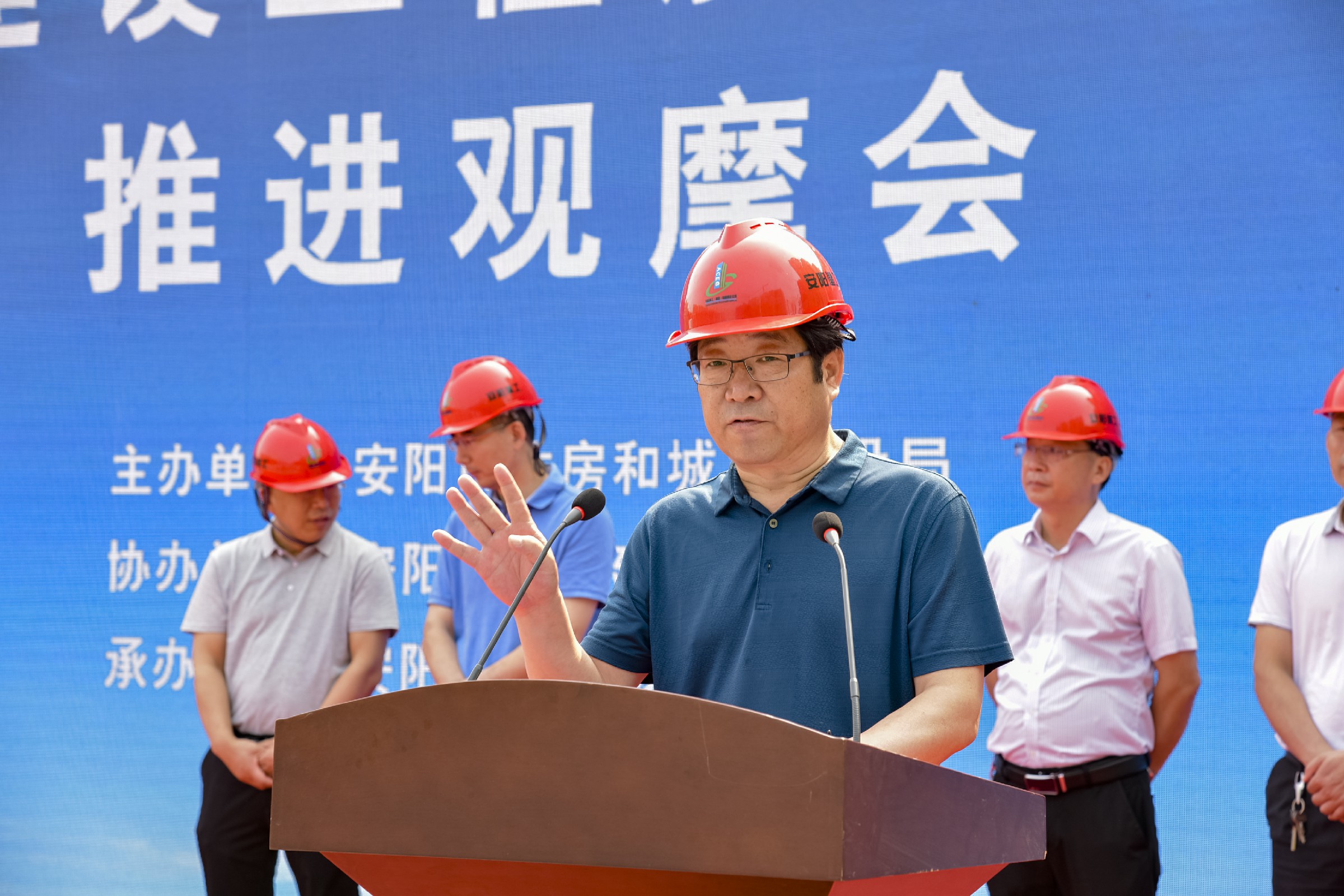 6月24日上午,由安陽市住房和城鄉(xiāng)建設(shè)局主辦,高新區(qū)建筑工程管理處協(xié)辦,安陽建工集團(tuán)承辦的“安陽市建設(shè)工程質(zhì)量安全手冊推進(jìn)觀摩會”在我公司海悅名郡項(xiàng)目施工現(xiàn)場順利召開。安陽市住建局黨組成員、總工程師許會生,安陽市住建局工程質(zhì)量安全監(jiān)管科科長李奇琪,安陽市建筑工程質(zhì)量監(jiān)督站站長張向民,安陽市建設(shè)安全監(jiān)督站站長王進(jìn)現(xiàn),安陽市市政工程質(zhì)量監(jiān)督站站長李虎,各縣(市、區(qū))住建局主管副局長、質(zhì)監(jiān)站、安監(jiān)站站長等領(lǐng)導(dǎo)出席。集團(tuán)公司董事長謝海如親臨現(xiàn)場觀摩指導(dǎo)、副總經(jīng)理劉民躬身一線督促安排。市各建筑工地的建設(shè)、施工、監(jiān)理單位相關(guān)人員約1700余人參加了此次觀摩活動。