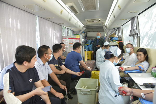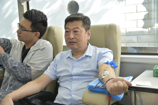 早上8時,參加無償獻(xiàn)血的員工在公司大院準(zhǔn)時集合,集團(tuán)公司總經(jīng)理謝飛、黨委副書記馬松林、副總經(jīng)理劉民、總會計師沈明軍等領(lǐng)導(dǎo)積極參與此次獻(xiàn)血活動并于獻(xiàn)血員工合影留念。隨即,員工排成整齊的隊伍走向采血車。
