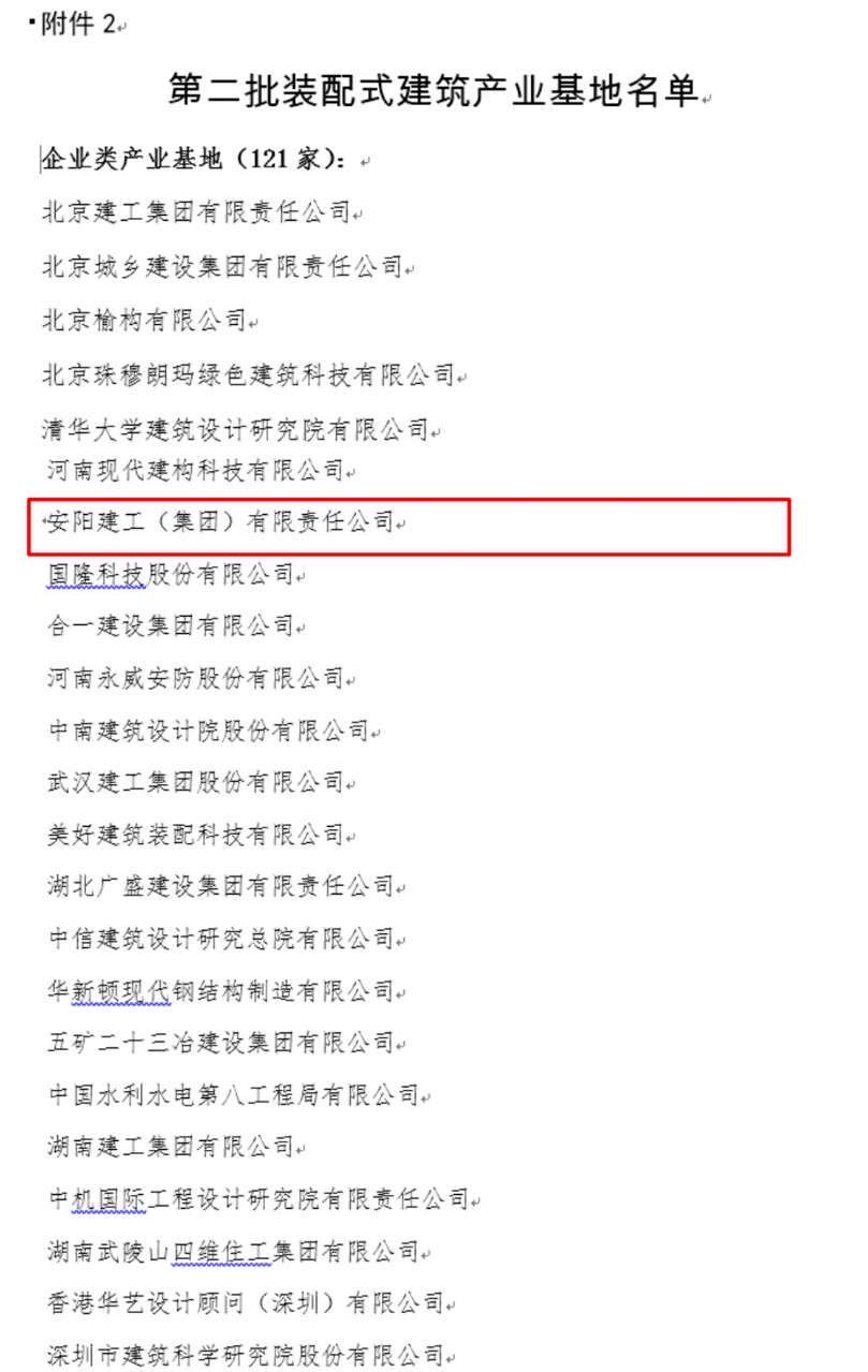 安陽(yáng)建工(集團(tuán))有限責(zé)任公司被評(píng)為國(guó)家“第二批裝配式建筑產(chǎn)業(yè)基地
