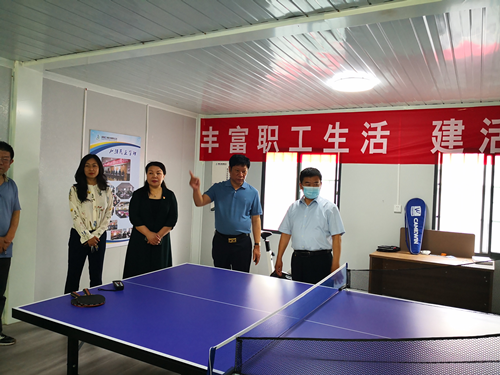 為推動全市基層工會職工之家建設,6月10日上午,市總工會組織召開全市基層工會職工之家建設工作現場會。市總工會黨組副書記、常務副主席曹保貴,市總工會黨組成員、副主席李希勤及各縣區工會、產業工會、基層工會領導蒞臨我公司海悅國際大廈項目部現場觀摩工會職工之家建設情況,集團公司董事長謝海如、工會主席馬松林全程陪同。