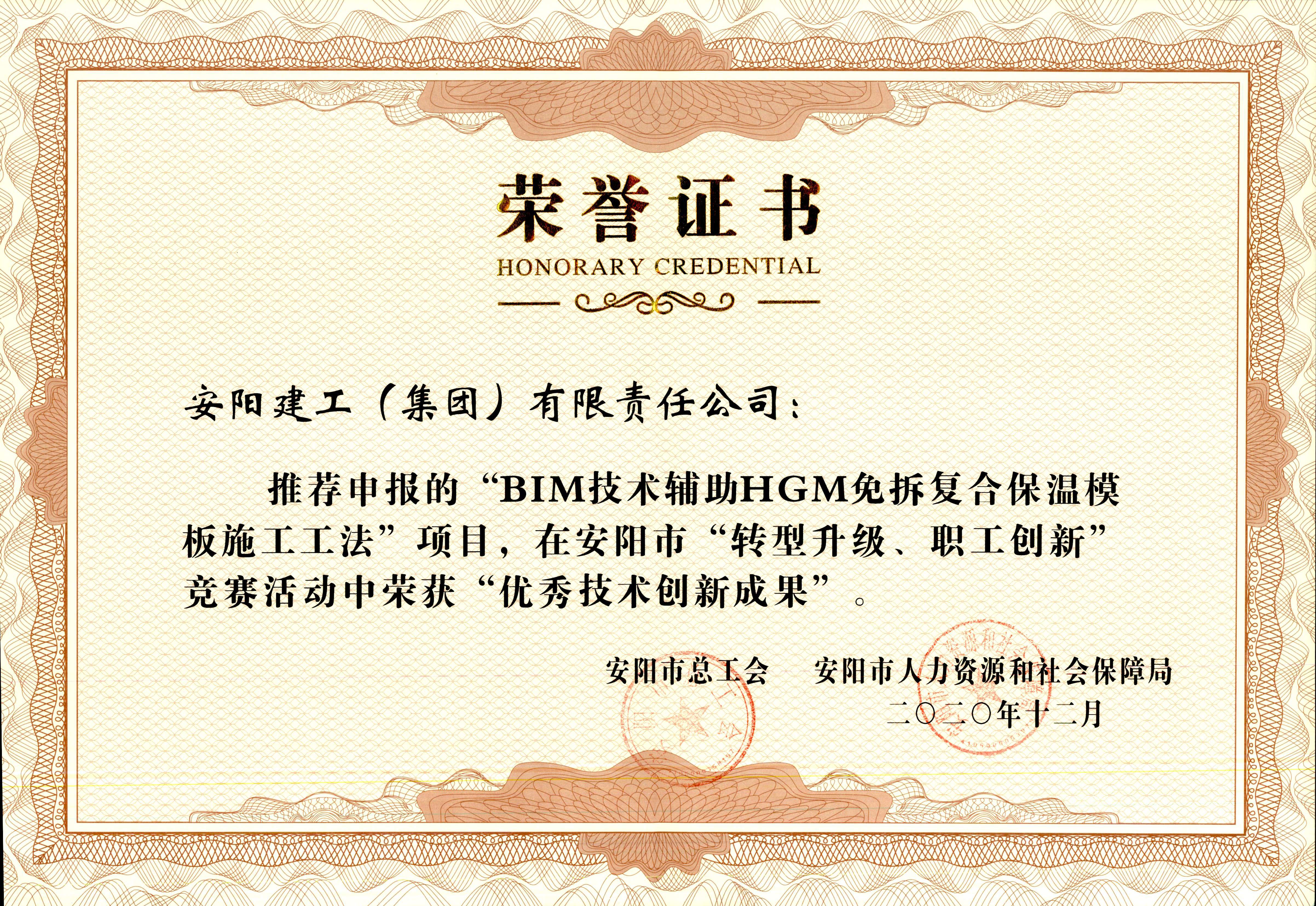 我公司榮獲安陽市“優(yōu)秀技術(shù)創(chuàng)新成果”獎(jiǎng)