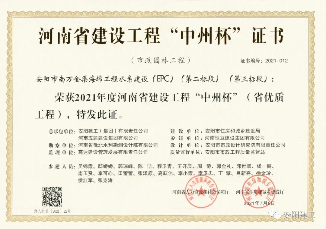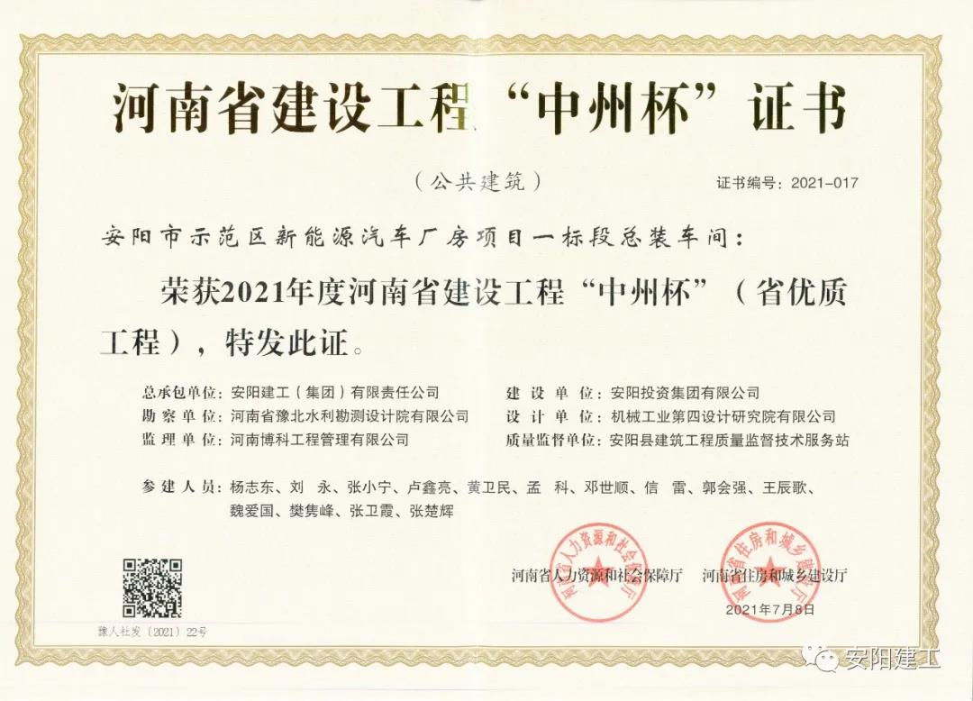 近日,喜報(bào)連連,我公司承建的“安陽(yáng)市示范區(qū)新能源汽車(chē)廠房項(xiàng)目一標(biāo)段總裝車(chē)間”、“安陽(yáng)市南萬(wàn)金渠海綿工程水系建設(shè)(EPC)(第二標(biāo)段)”等多項(xiàng)工程榮獲“2021年度河南省建設(shè)工程‘中州杯’(省優(yōu)質(zhì)工程)”獎(jiǎng),獲獎(jiǎng)工程涵蓋了住宅工程、公共建筑、市政園林等多個(gè)領(lǐng)域。