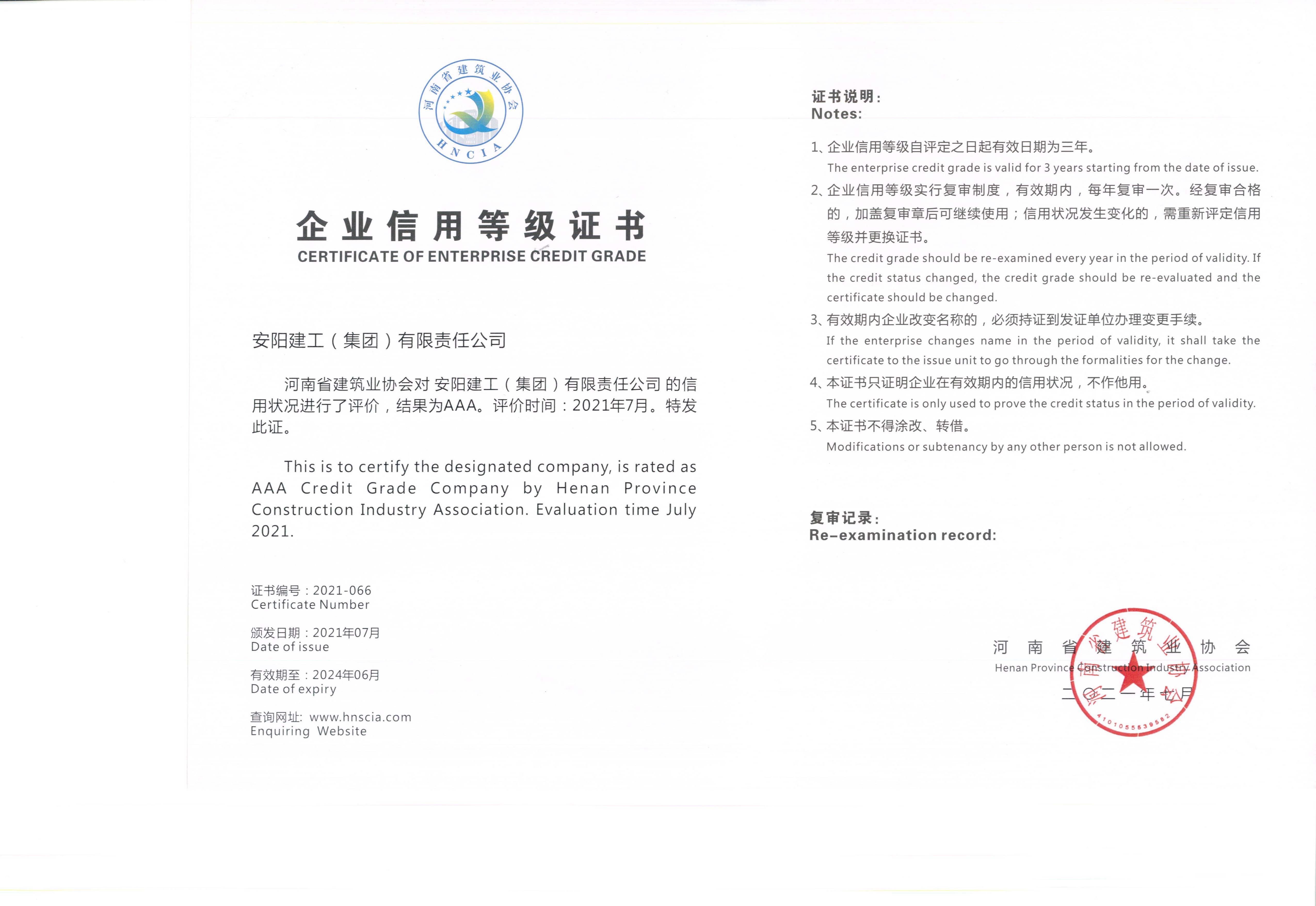 近日,河南省建筑業(yè)協(xié)會(huì)公布了“2021年度河南省建筑業(yè)AAA級(jí)信用企業(yè)”名單,安陽建工(集團(tuán))有限公司榮獲河南省建筑業(yè)“AAA級(jí)信用企業(yè)”榮譽(yù)稱號(hào)。