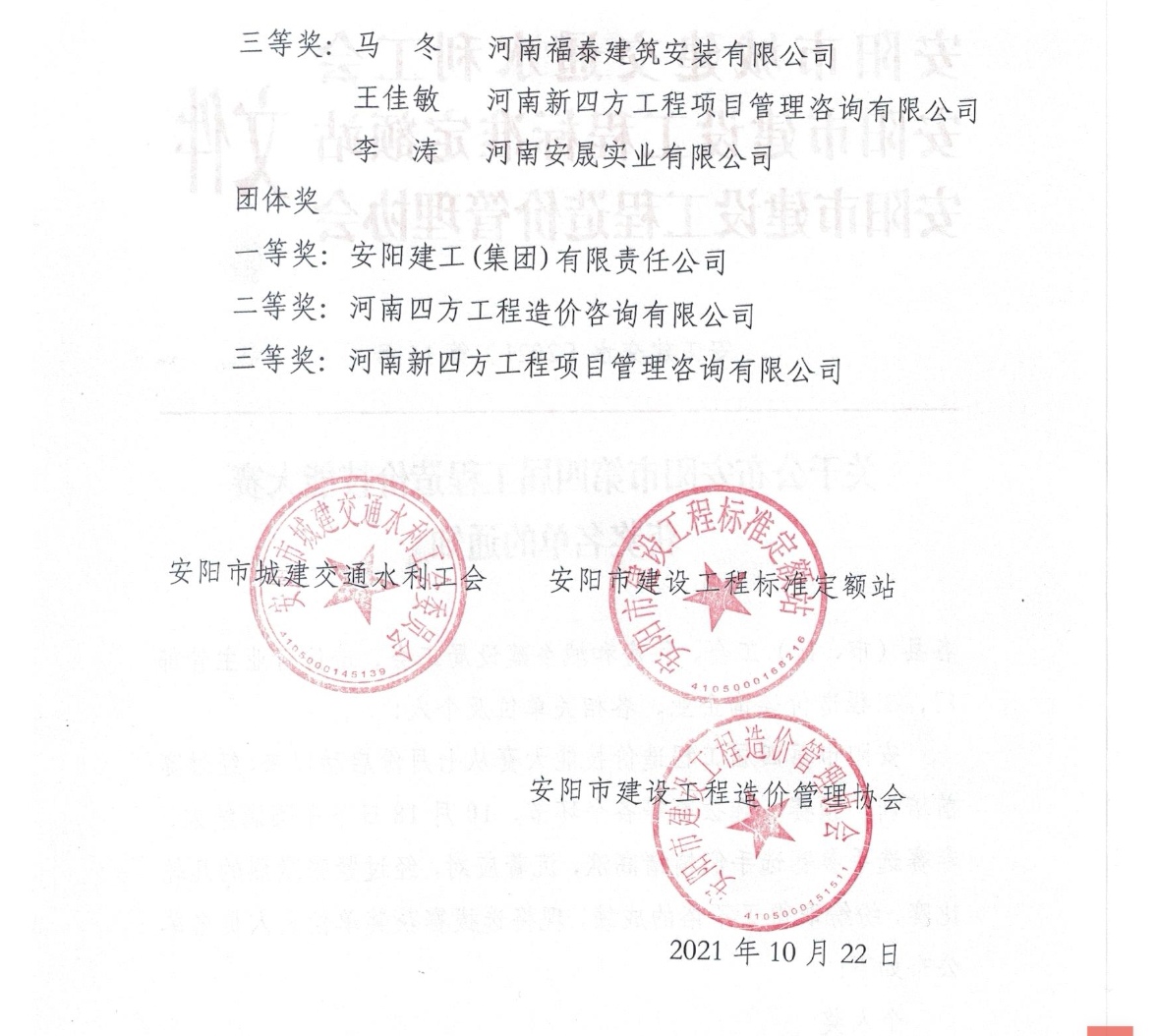 喜訊!安陽建工集團在“安陽市第四屆工程造價技能大賽”中