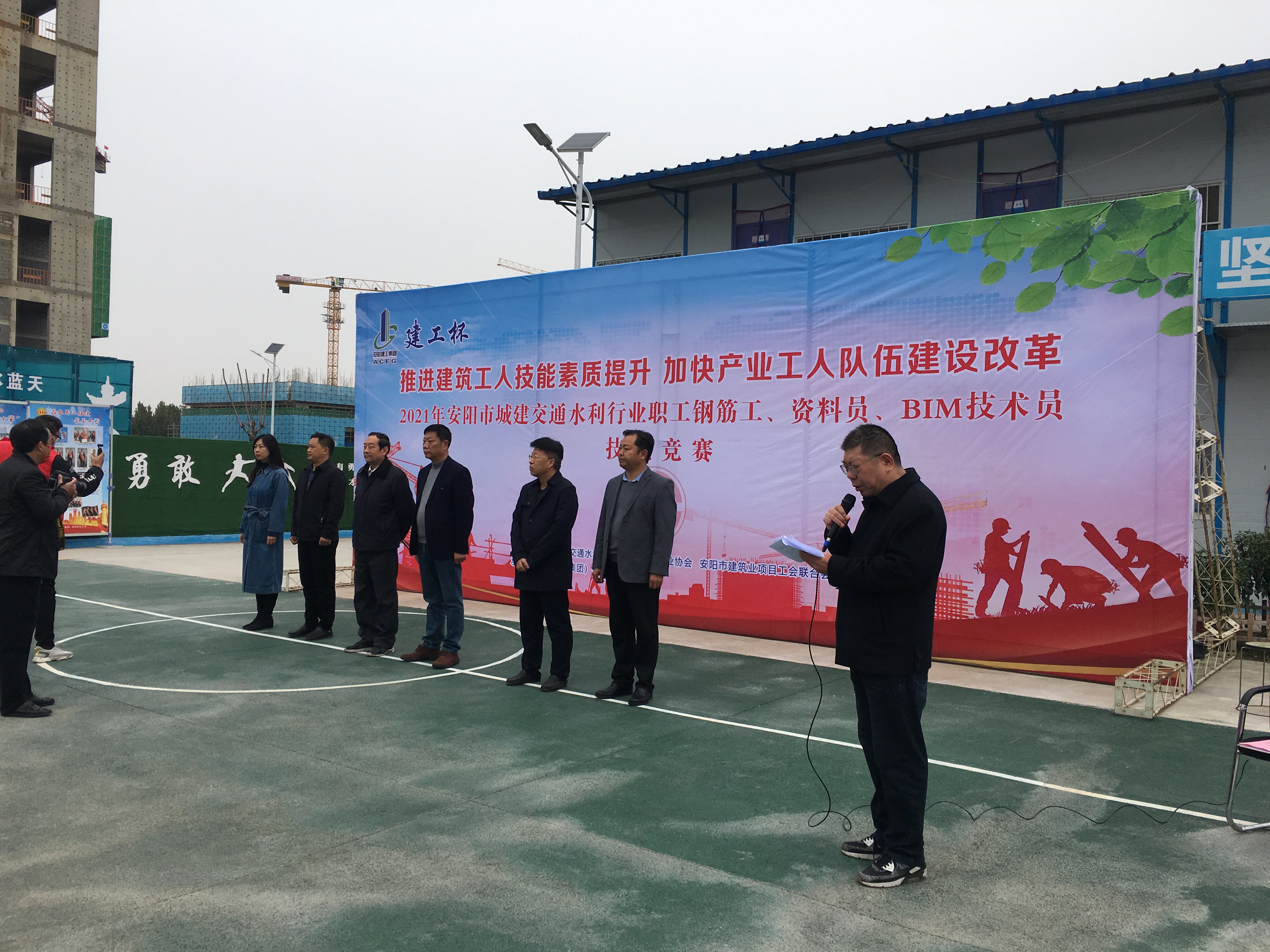 為深入貫徹落實(shí)習(xí)總書記關(guān)于產(chǎn)業(yè)工人隊伍建設(shè)改革的重要指示精神,在全市建筑行業(yè)大力弘揚(yáng)工匠精神,激發(fā)系統(tǒng)職工創(chuàng)新創(chuàng)業(yè)熱情,造就一支高素質(zhì)的建筑產(chǎn)業(yè)工人隊伍,扎實(shí)推進(jìn)《安陽市產(chǎn)業(yè)工人隊伍建設(shè)改革實(shí)施方案》落地生根,營造勞動光榮、技能寶貴的社會風(fēng)尚和精益求精的敬業(yè)風(fēng)氣,2021年安陽市城建交通水利行業(yè)鋼筋工、資料員、BIM技術(shù)員開賽儀式于10月20號上午在安陽建工集團(tuán)海悅國際大廈項(xiàng)目部隆重開幕。