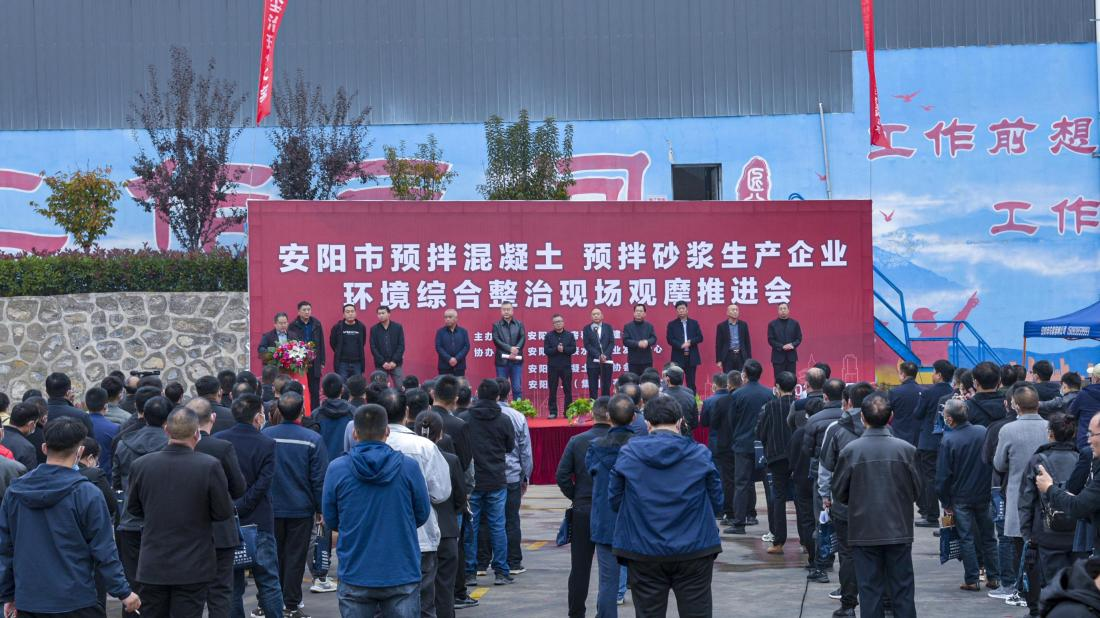 為了貫徹習近平總書記新時代社會主義特色發展理念,進一步落實省委、省政府的工作部署及《安陽市預拌混凝土預拌砂漿生產企業環境綜合整治驗收工作實施方案》通知精神。11月2日,全市預拌混凝土、預拌砂漿生產企業環境綜合整治現場觀摩推進會在集團商品混凝土公司召開。市住建局黨組成員、副局長李樹錄;市住建局散裝中心主任張繼承;安陽市建筑業協會會長、公司董事長謝海如;市住建局散裝中心副主任閆紅亮;安陽市預拌混凝土砂漿協會會長、集團商品混凝土公司經理王國紅以及來自各縣(市)區住建局主管領導;各縣(市)區散裝水泥行業管理部門負責人;各預拌混凝土、預拌砂漿生產企業主要負責人、經理共計200余人到場參會,會議由安陽市散裝水泥事業發展中心支部書記孟憲文主持。