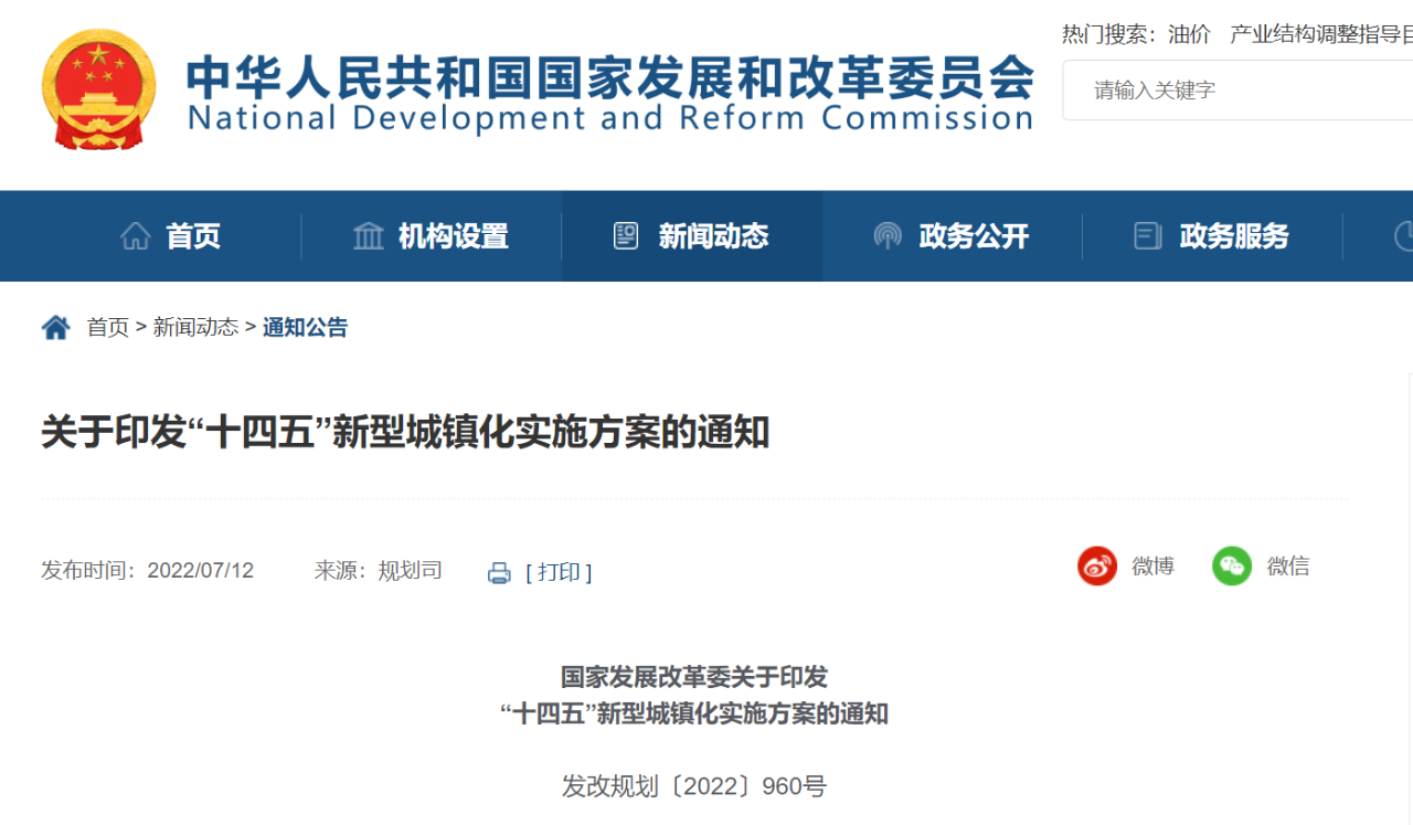 7月12日,國家發改委發布《“十四五”新型城鎮化實施方案》,明確“十四五”時期推進新型城鎮化的目標任務和政策舉措,推動城鎮化質量不斷提高。