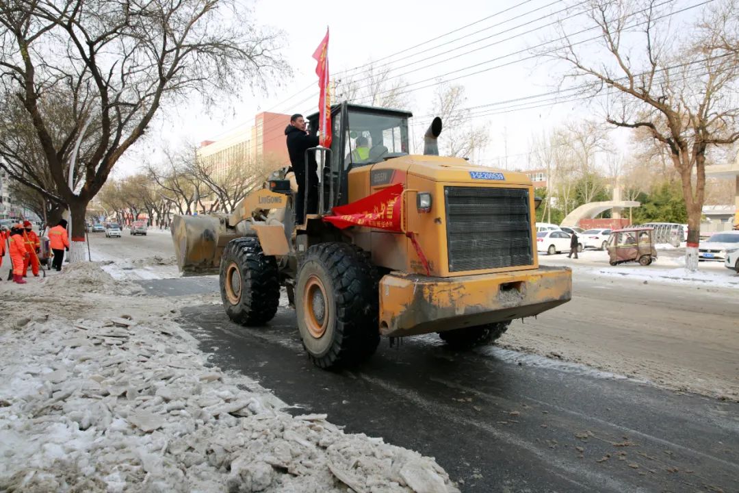 根據市住建局和市建筑業協會統一安排部署,公司安全部、工程部、建勝攪拌站和建筑材料有限公司(砂漿攪拌站)等部門和單位第一時間組織人員和裝載機到達光明路、朝霞路、興業路、曙光路等交通要道,有序開展清雪工作,用實際行動詮釋建工的奉獻和擔當。