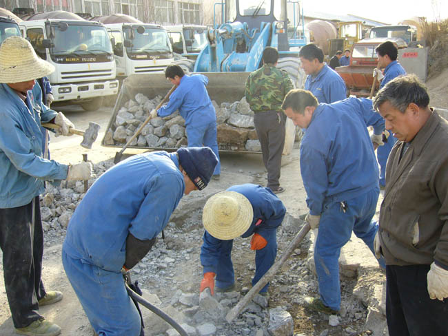 2004年初,六號車遠(yuǎn)征少洛(少林寺——鄭州)高速載譽歸來,主車司機(jī)崔國慶看著整修過的罐體,心中有些不悅,原來,修補攪拌葉片時電焊把罐體上的漆燒掉了幾片,俗話說的好:汽車的頭,司機(jī)的臉,這不僅影響了車的整體美,而且有悖于公司“攪拌運輸車是流動的廣告,是公司的戶外形象,是古城安陽街頭一道亮麗的風(fēng)景線”的要求。怎么辦?崔國慶二話沒說,從倉庫領(lǐng)出手提除銹機(jī),打磨,除銹,刷防銹漆。司機(jī)班長楚樹林也熱情幫忙,兩人拉氣泵,自己動手當(dāng)起油工。剛開始沒有經(jīng)驗,噴出的色澤、薄厚不一,但很快就找到了竅門,經(jīng)過幾天忙碌,六號車變的如同新車。隨后,裝載機(jī)司機(jī)吳愛國也把裝40重新噴漆。泵工班維修混凝土泵已稱得上專家,馬士兵,李建民,孟慶印,張志秀,楊坤個個是一把好手,精心保養(yǎng)與維修,使2號、3號泵使用至今從沒換過大件,受到拖泵生產(chǎn)廠家售后人員的交口稱贊。2004年底,攪拌主機(jī)出現(xiàn)漏漿,其他部位分別出現(xiàn)不同程度的磨損,生產(chǎn)技術(shù)部決定:以我為主,適當(dāng)聘請外部專業(yè)人員。機(jī)修、泵工、生產(chǎn)、司機(jī)班員工以及管理人員全力以赴,并且根據(jù)多年使用的經(jīng)驗,對不很合理、問題多發(fā)部位進(jìn)行整改,收效甚大。從此,利用節(jié)假日維修主機(jī)成了不成文的規(guī)定。2007年春節(jié)前后近40天時間,公司對攪拌主機(jī)、管理系統(tǒng)進(jìn)行大規(guī)模改造,并新增骨料倉、粉料倉各一座,其中有一半多的工作是公司員工動手做的。